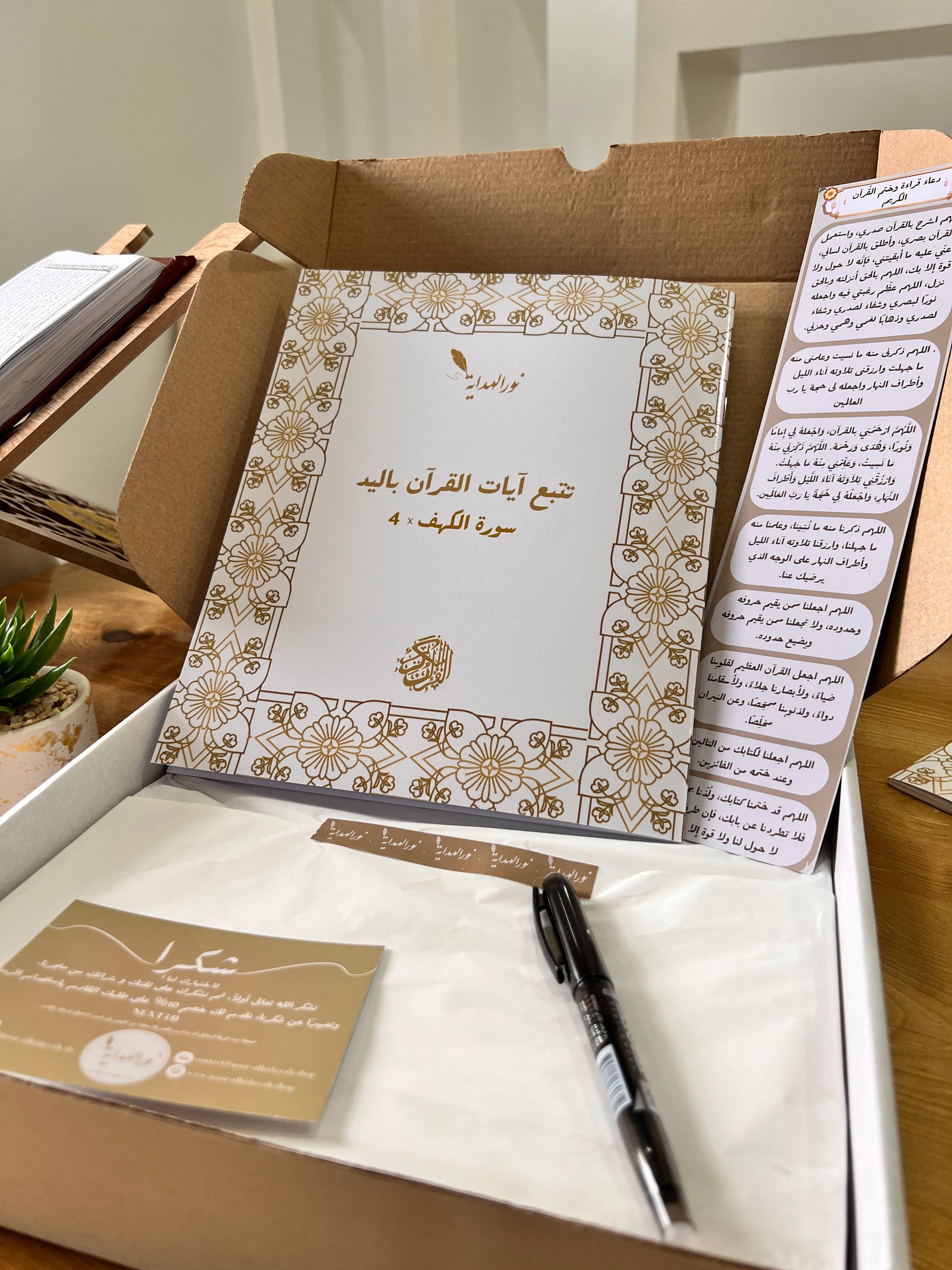 احصل على كتاب خاص يحتوي على سورة الكهف مكررة 4 مرات عند شِراء القرآن كاملا، كتاب مثالي لكتابة سورة الكَهفْ كل يوم جمعة من رمضان وترسيخ هذه العادة المباركة